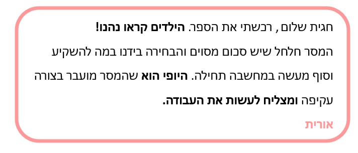 ומוצא את התשובה לתעלומה. כשתסיימו את המסע תקבלו גם אתם, ממש כמו יוסי,